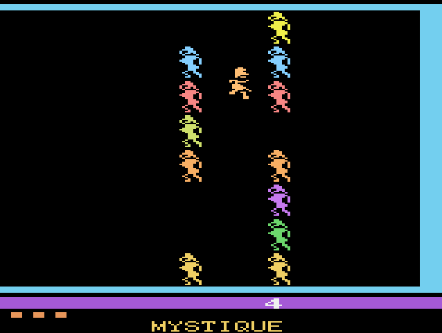 Mystique games come in pairs, depending on which gender role you want to adopt (with “General Retreat” serving as the reverse of “Custer’s Revenge”); however, since they boast identical gameplay and each one revolves around a heterosexual orientation, the end result doesn’t change. Game winners get to watch pixel clusters and imagine it looks like a man and woman having sex. Of all the games I got working, only Custer’s Revenge suggested a non-consensual relationship, since the box art depicts the girl tied to a pole, but since General Retreat shows her free and going after Custer, I can only assume she enjoys that sort of thing.