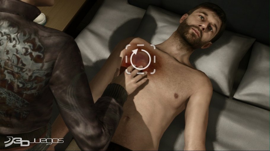 504300-heavy-rain-playstation-3-screenshot-squeezing-the-answers Boiled down to essentials, Heavy Rain tells a good story, and the QTEs don’t get in the way too much, but in the end it feels like a handjob from a prostitute–sure, the resolution satisfies you, but you could have had more. And even if you like getting jerked around at the end, you know you have to wait a while before going back to try out the other endings.