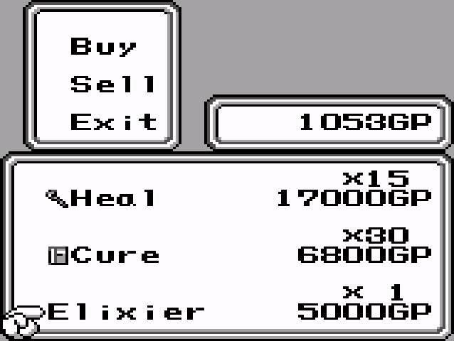 If you ever suspected yourself of having a trace of OCD, avoid this game for its menus. Characters can equip a set number of weapons, magic or items, but as many as they want of each. Except for armor. And certain spells which seem character specific. And a few abilities that don’t seem to do anything. Oh, and the monster can’t equip anything, which limits how much your party can carry. Once again as usual for this era of RPGs, the game treats healing items and spells like novelty trinkets, dropping them here and there when it thinks you might have some cash to spare, and kindly exiting the menu after a single use. How much did you heal, 30 HP? That should easily get you through the next dozen battles with 15 monsters apiece, each holding fully automatic rifles and a belt made from the thumbs of previously defeated players. But apparently Square felt they needed to make the game just a little harder, so the equipment degrades with each use.