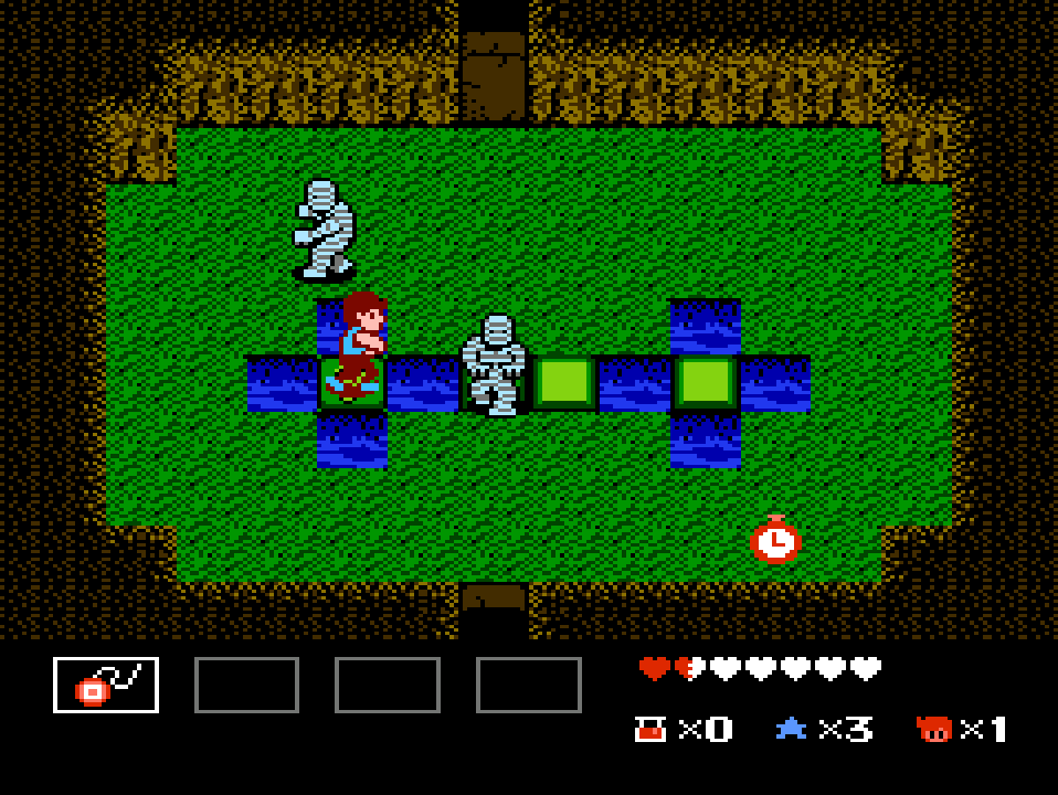Underground labyrinth? Check. Mummies? Check. Stopwatch that freezes monsters? Check. Heart meter? Check. Yup. We’ve got the Legend of Zelda…with a yo-yo.