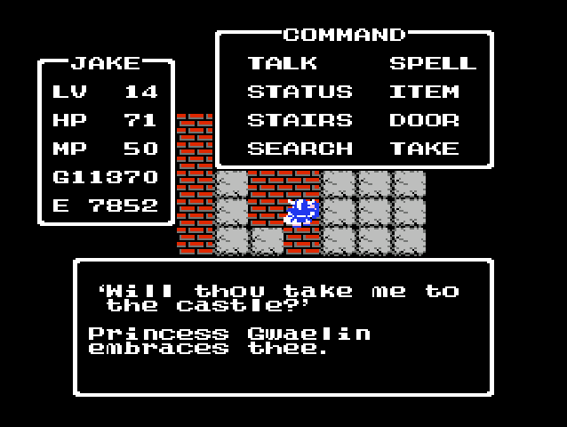 One positive thing I’ll say for the game: it gave Torneko an ability to initiate a monster battle at any time, cutting out the need for useless walking between battles. I take this as clear evidence that Dragon Quest IV knows it only has value as a time-killing grinder, but even with this trick to speed things up, it still felt like I’d hit my mid-life crisis before the end of the game. Unfortunately, any time gained by not walking while grinding balances out with time wasted managing menus. For each option, you have to flip through three or four dialogue boxes that want to confirm in triplicate that yes, you indeed want to use that herb. Or save. Or anything. Yes. Given the choice I will always answer yes. Yes, I’ll sell the damned sword! Yes, I want to equip the armor! Yes, I’ll continue the game after I save! (who thought of this one? Do you need to go to a special screen to shut the power off? Did the original NES erase your data otherwise?)