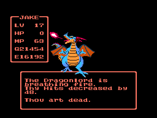 Thought I should include a screen shot of the NES version. Apparently they added the borderline-offensive gibberish for the DS version